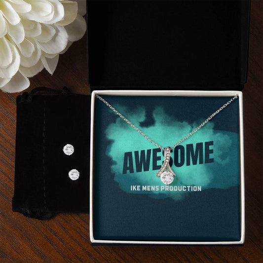 AWESOME Forever Love Necklace + Clear CZ Earrings