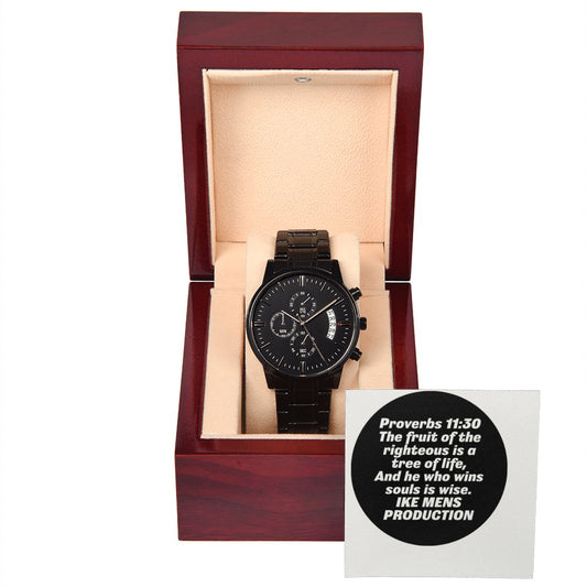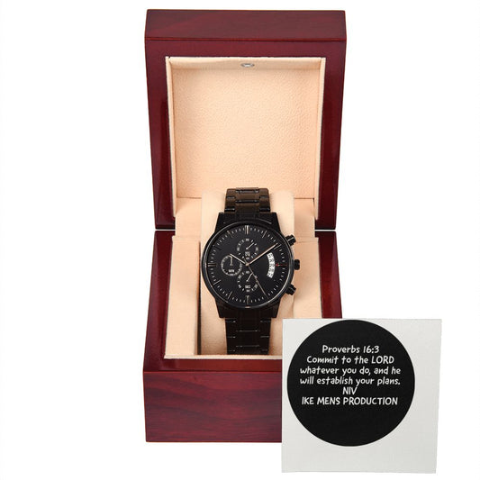 BLACK CHRONOGRAPH WATCH WITH PROVERBS