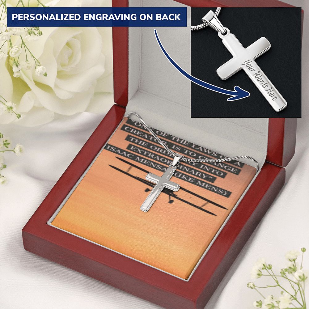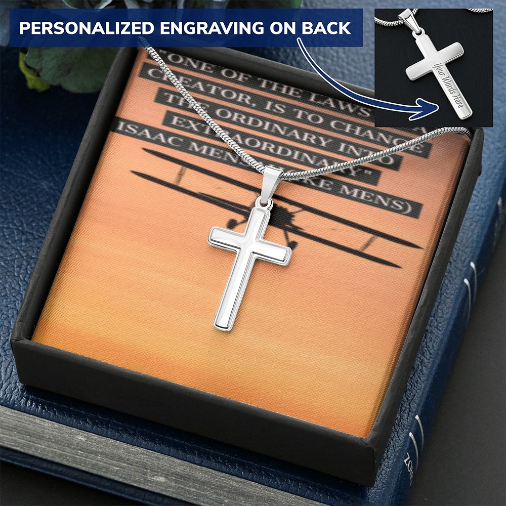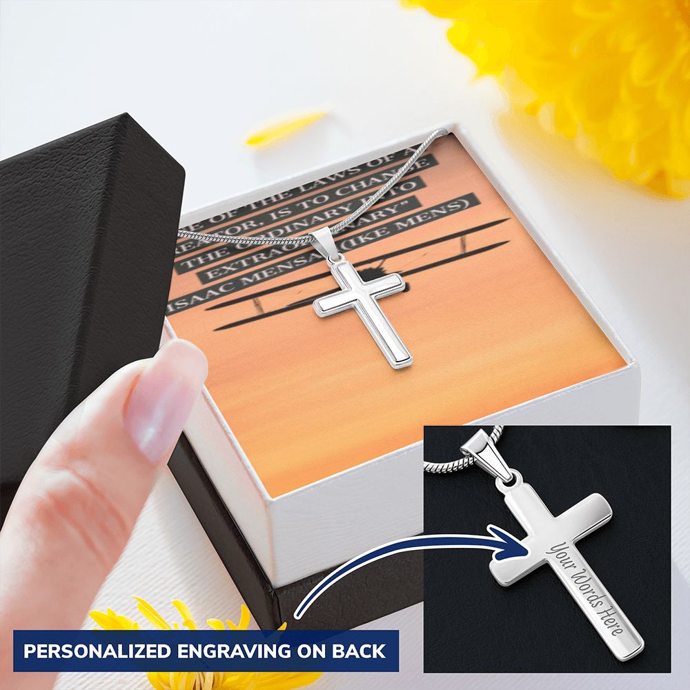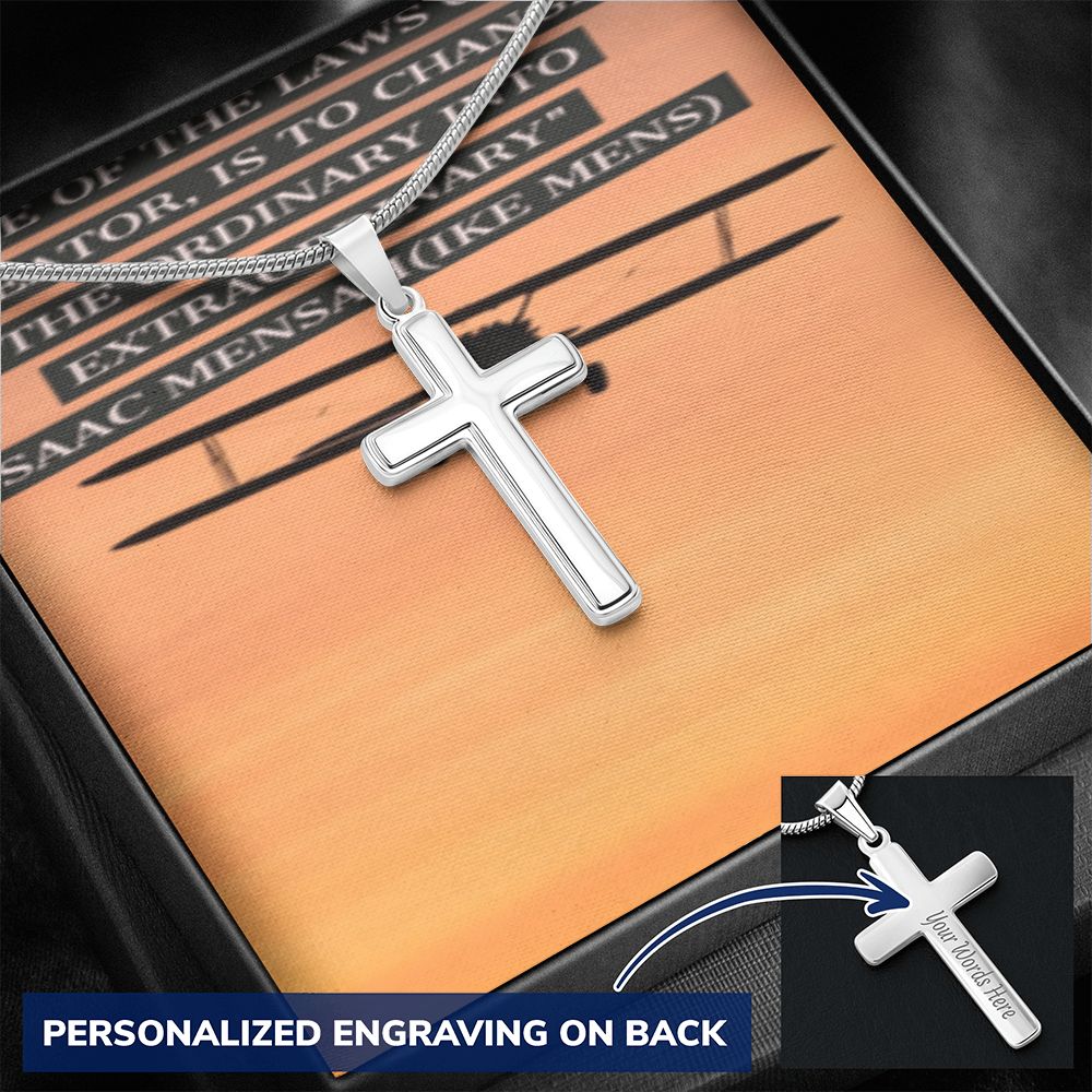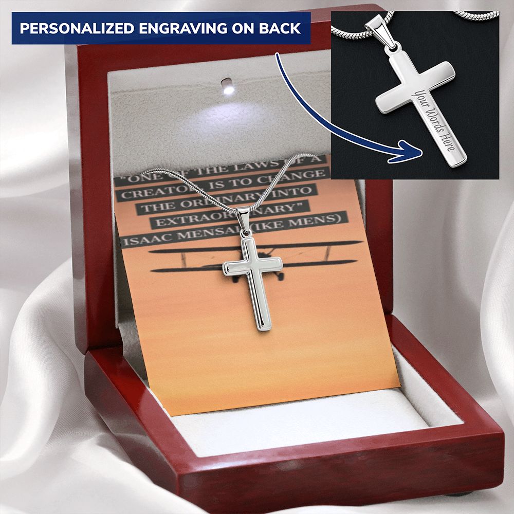 CROSS NECKLACE WITH IKE MENS QUOTE