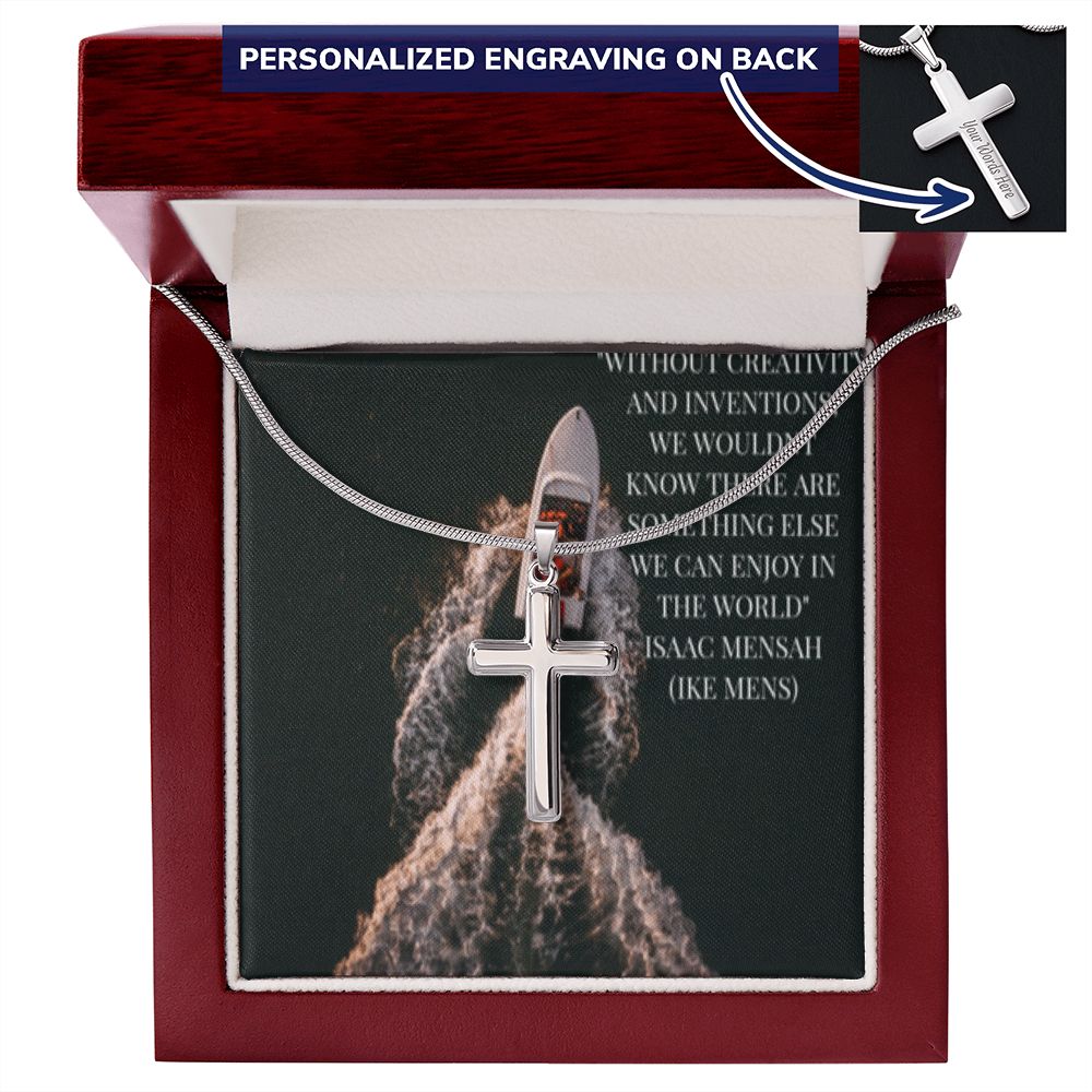 CROSS NECKLACE WITH IKE MENS QUOTE