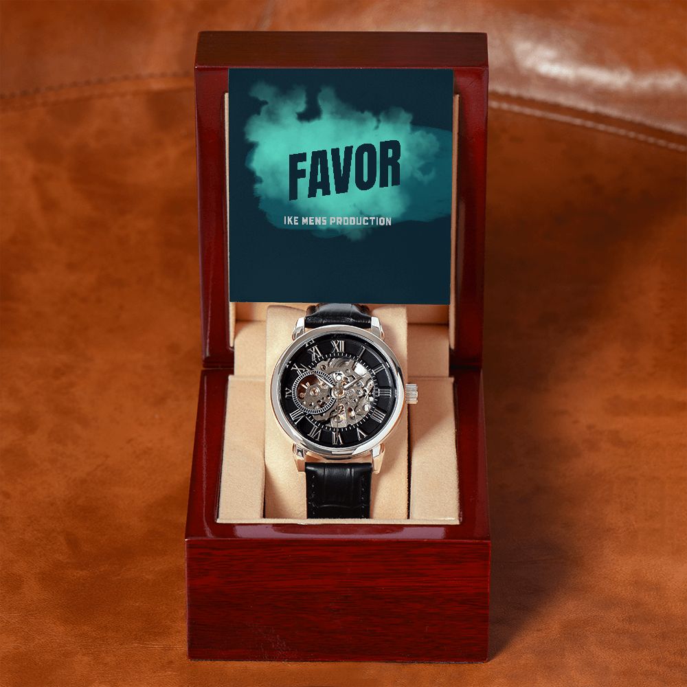 Give the gift of luxury with this handsome and daring timepiece. The Men's Openwork Watch is the perfect blend of classic design and modern styling, making it an essential accessory for your remarkable style. This watch sports a genuine leather strap, is splash resistant, and has increased durability thanks to hardened mineral glass. Our unique skeleton dial feature allows you to peer directly into the inner workings of your watch. Beautifully crafted to be automatic, this watch requires motion instead of batteries. You will keep precise time simply by wearing it, no winding necessary. This magnificent piece makes the perfect gift for yourself or any man in your life looking to add a tasteful element into his wardrobe.