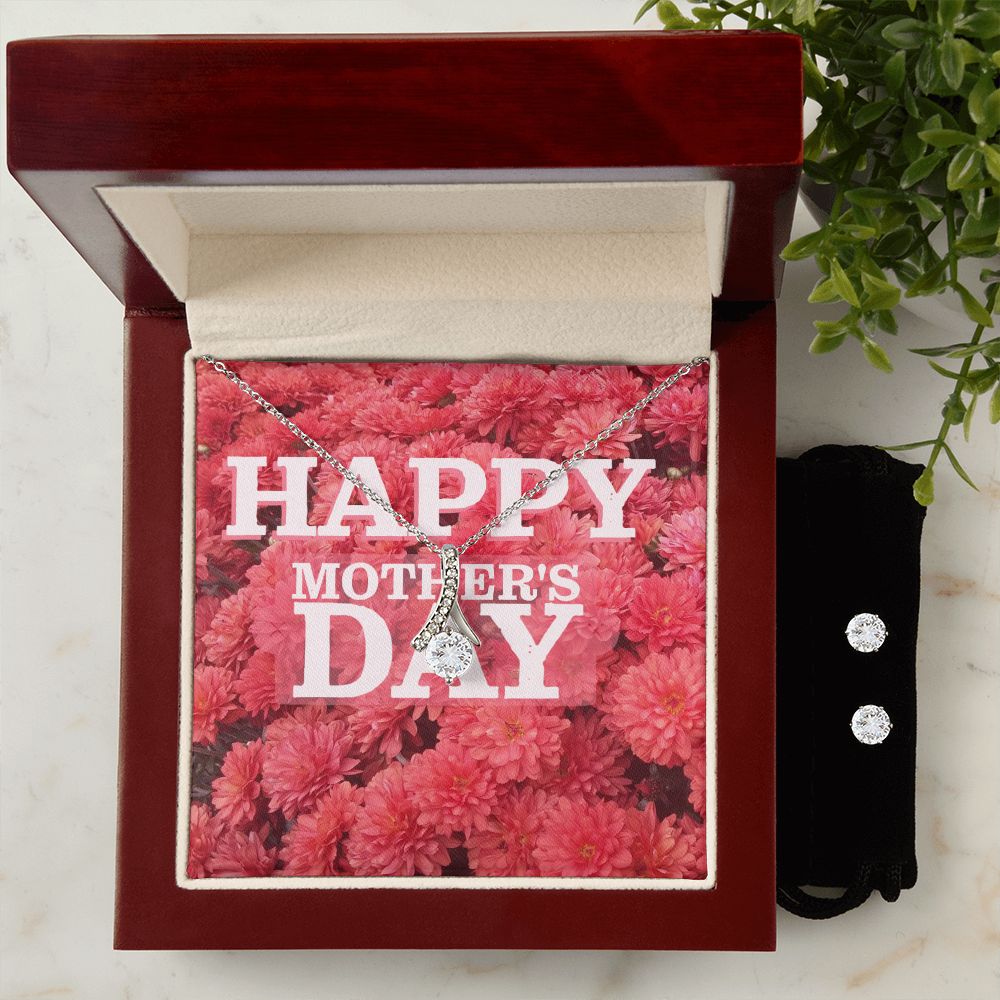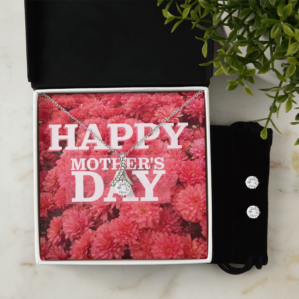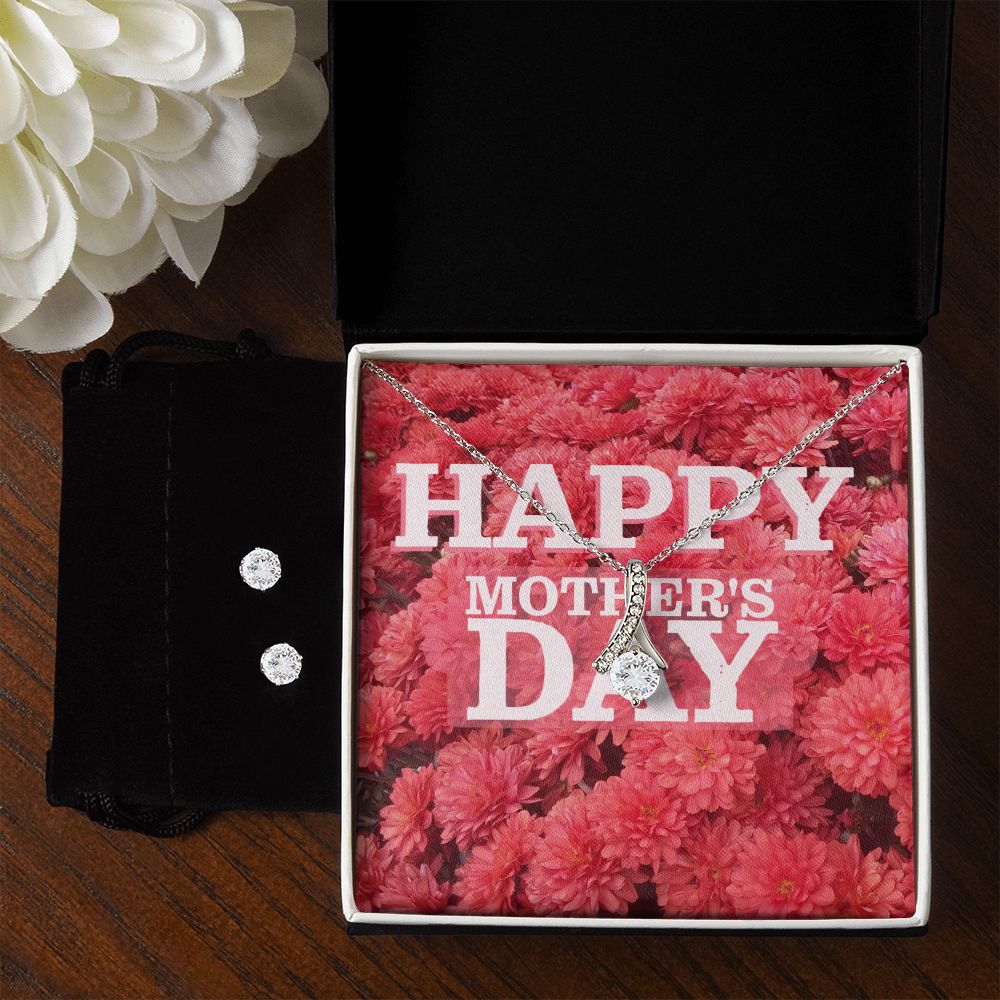 Happy Mothers Day Forever Love Necklace with CZ earring set