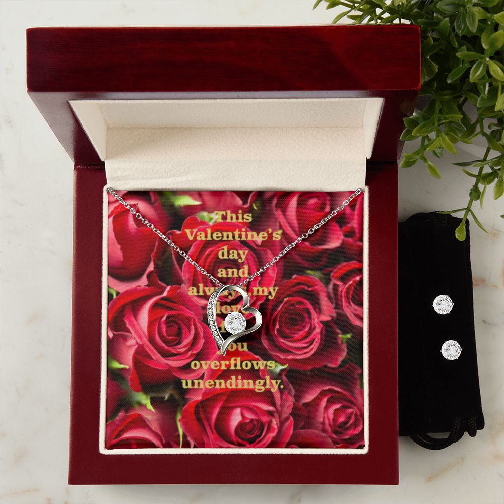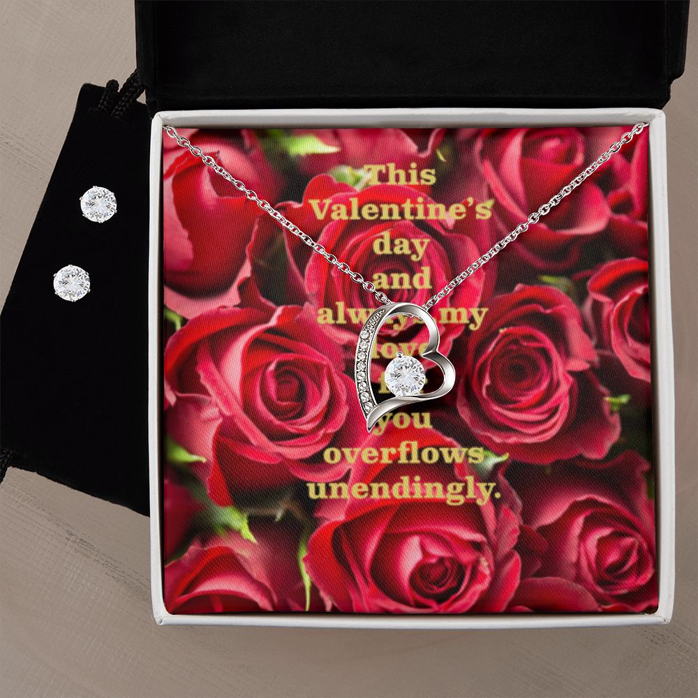 HAPPY VALENTINE'S DAY FOREVER LOVE NECKLACE +CLEAR CZ EARRINGS
