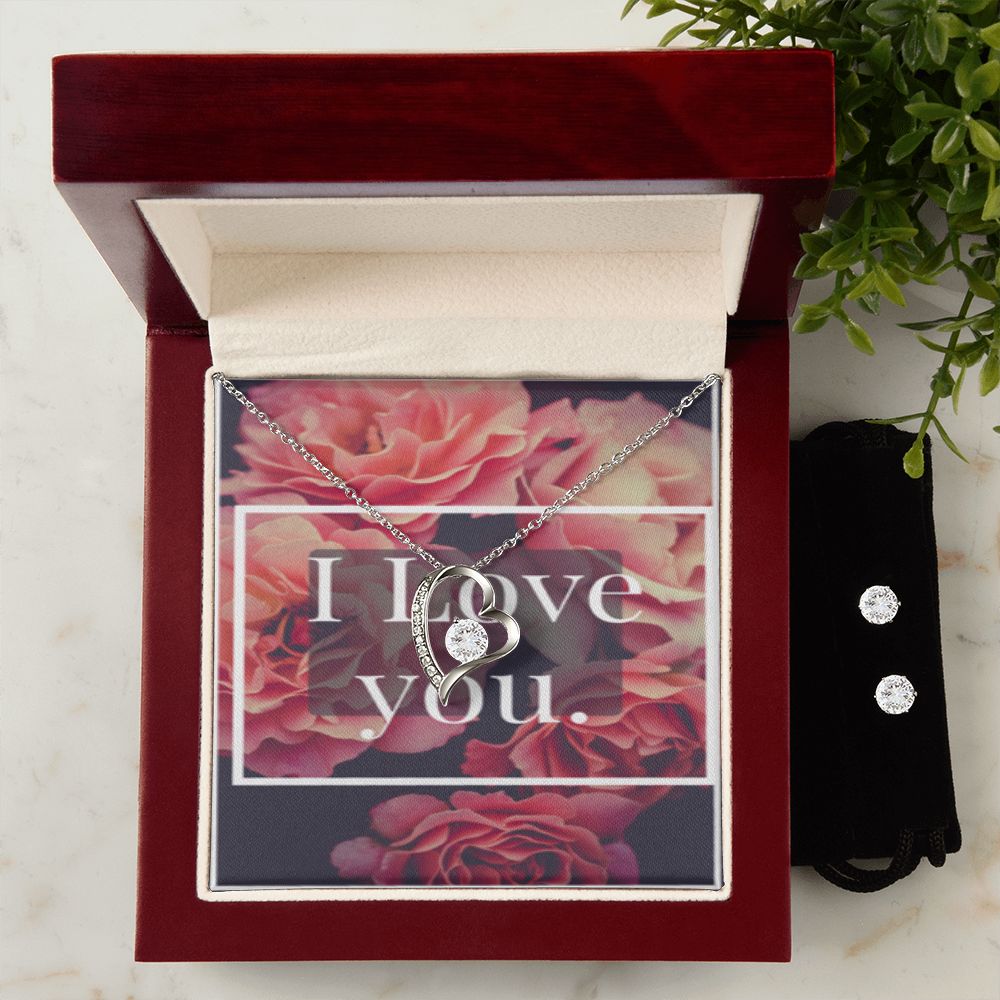 I LOVE YOU FOREVER LOVE NECKLACE +CLEARV CZ EARRINGS