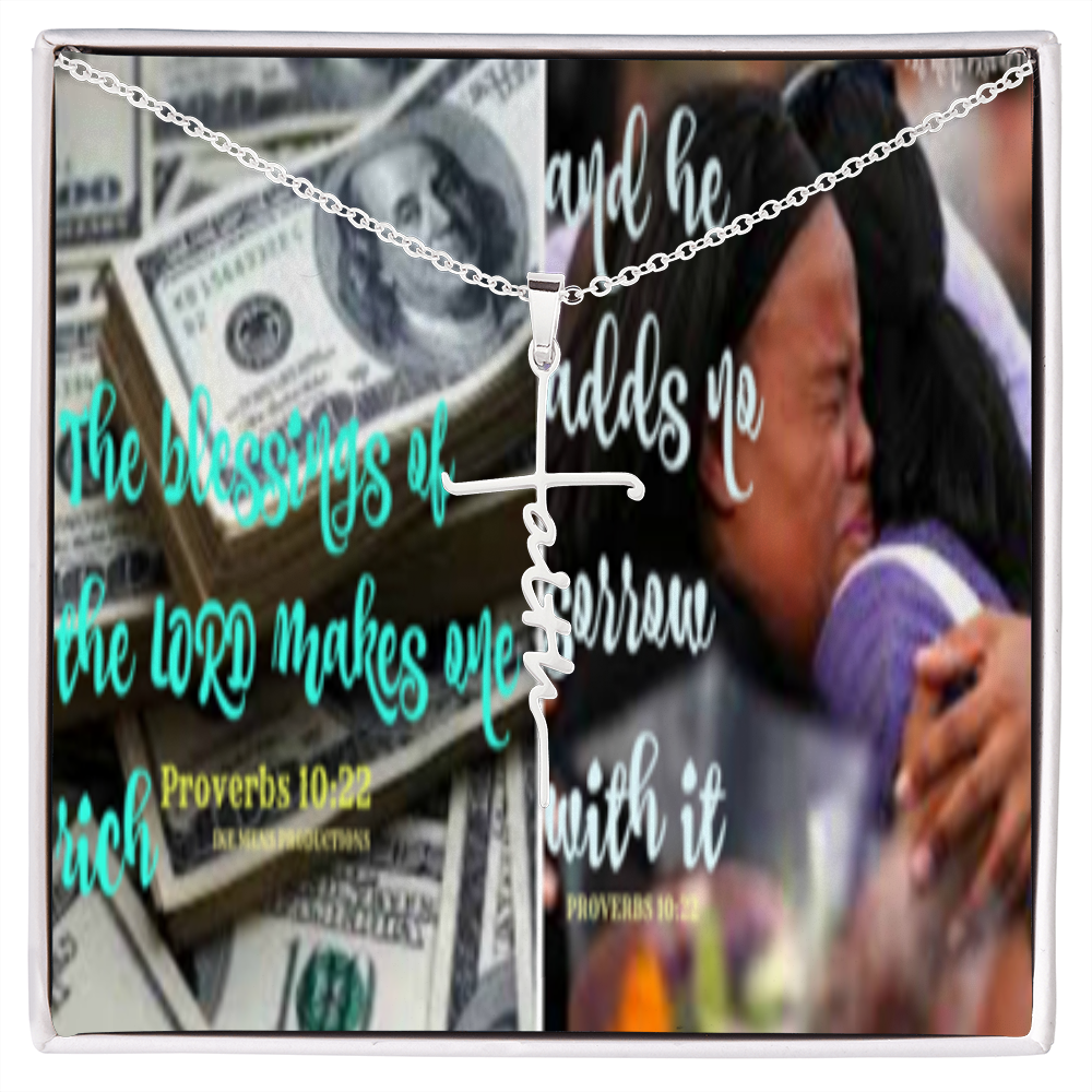 IKE MENS SCRIPTURE COLLAGE FAITH CROSS NECKLACE CHAIN NECKLACE