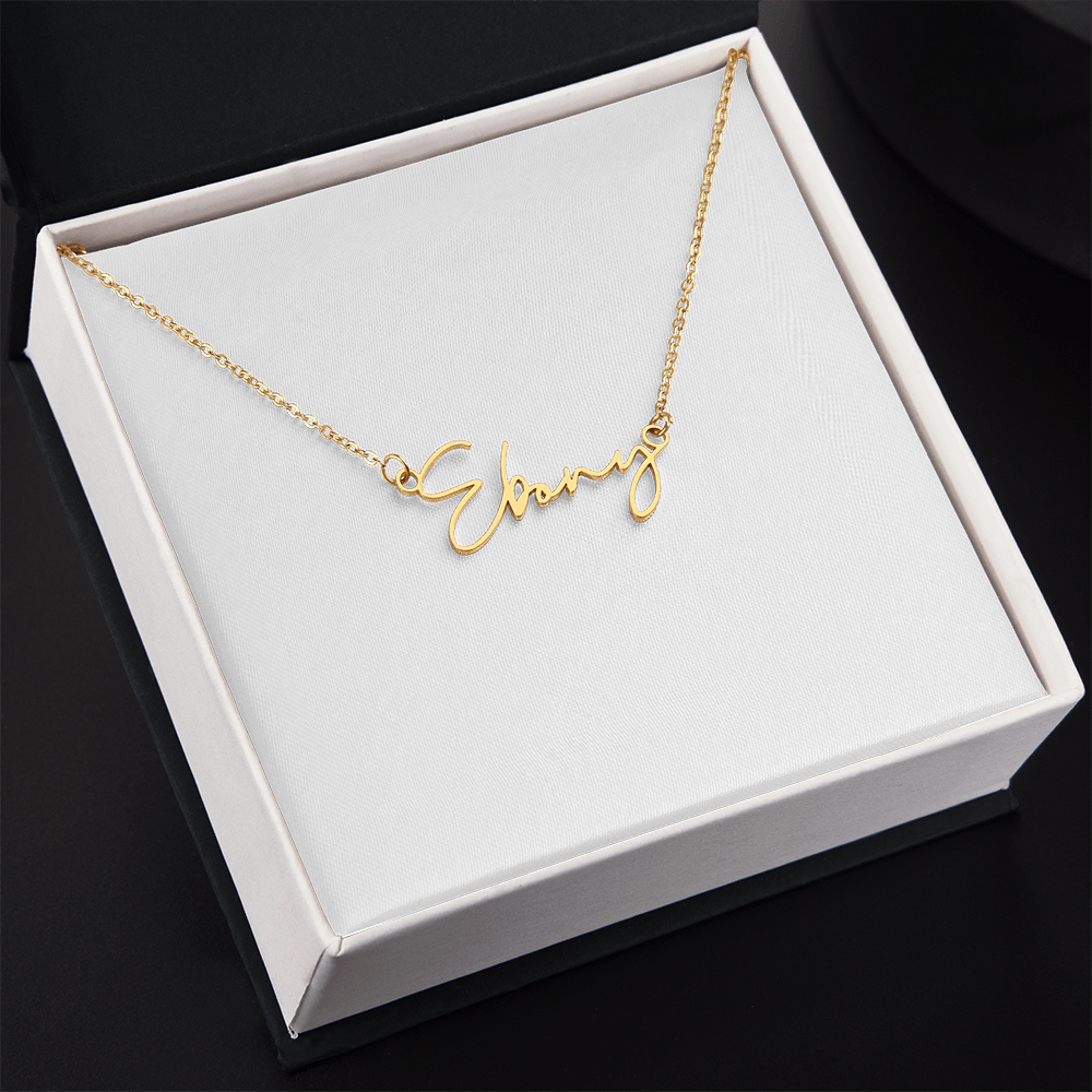 Looking to give your loved one a stylish and personalized gift that will melt their heart? Check out our Signature Style Name Necklace! This adorable custom necklace features a contemporary font that is sure to become a favorite accessory! From a heart-warming holiday present, special occasion gift, or just because, this unique necklace adds a trendy touch to any outfit