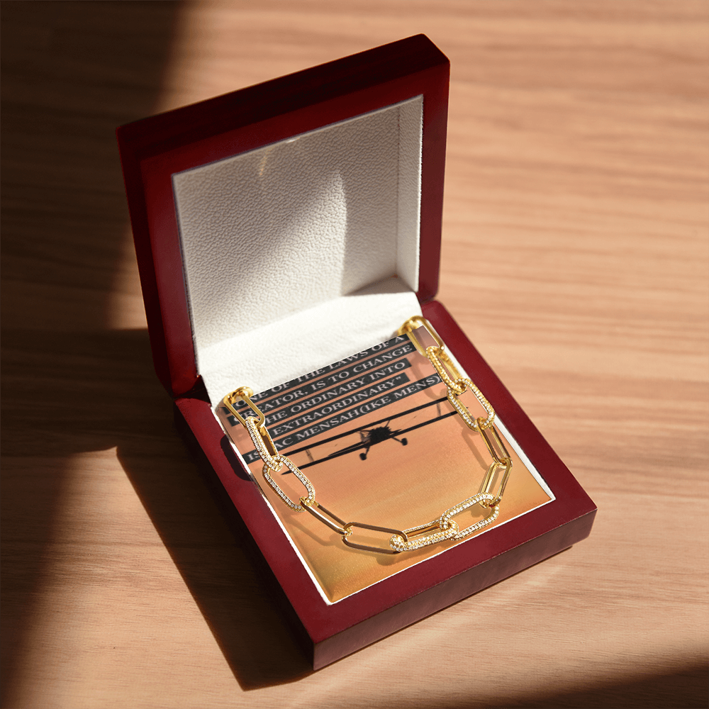 This gorgeous necklace is lovingly packaged in our Mahogany Style Luxury Box, with an LED spot light for an extra wow factor - and easy gifting!