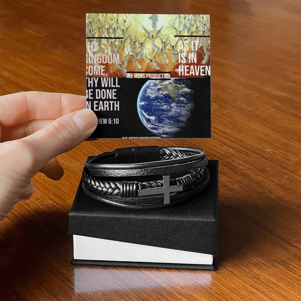 IKE MENS SCRIPTURE COLLAGE Men's Cross Leather Bracelet