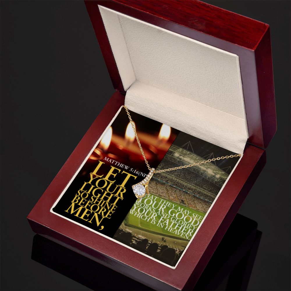 Imagine her reaction when she opens this stunning gift! The Alluring Beauty necklace features a petite ribbon shaped pendant that is sure to dazzle your special someone. Whether it's a birthday or anniversary, make sure to get her a gift she will love for years to come.