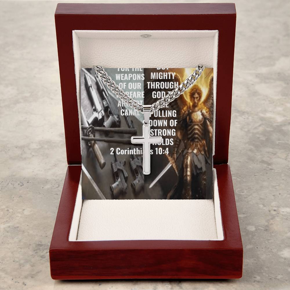 IKE MENS Scripture Collage Cuban Chain with Artisan Cross