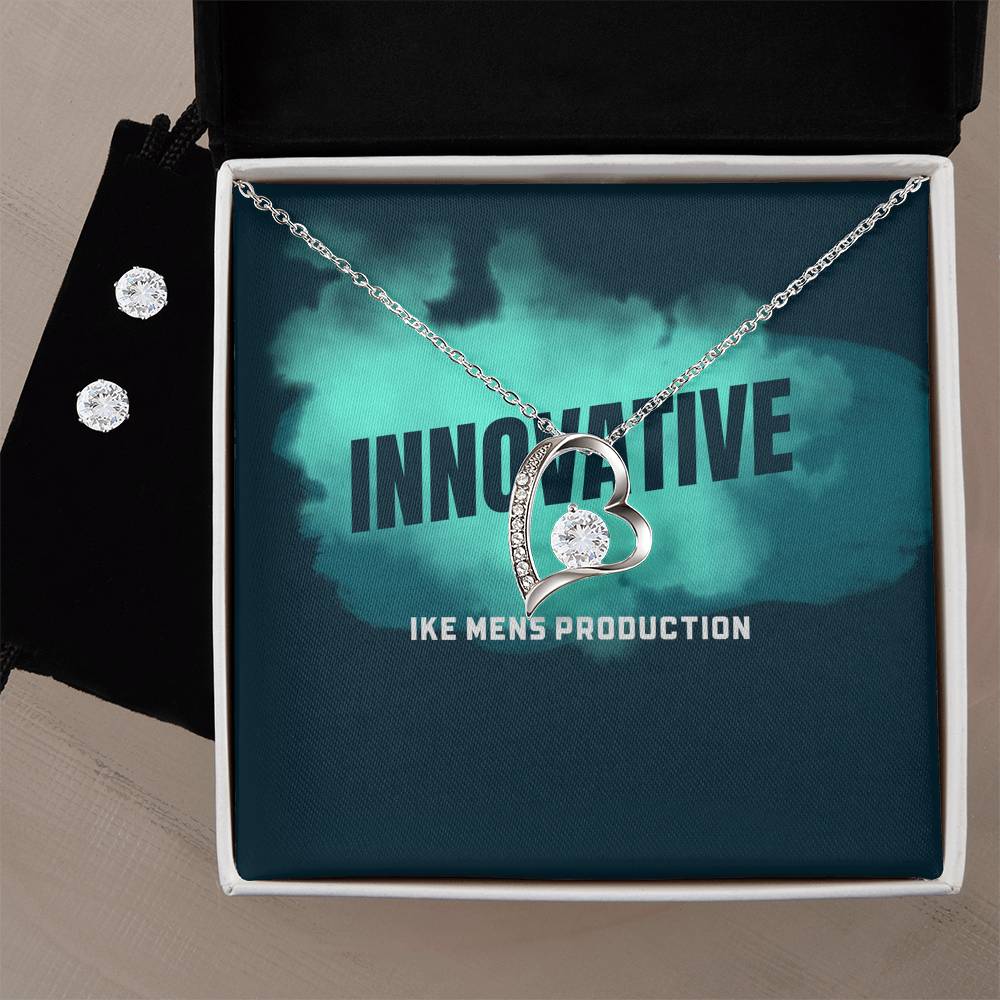 INNOVATIVE Forever Love Necklace + Clear CZ Earrings