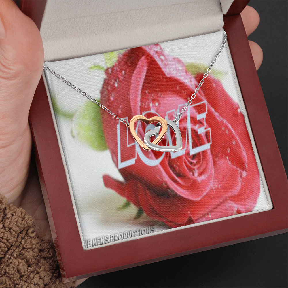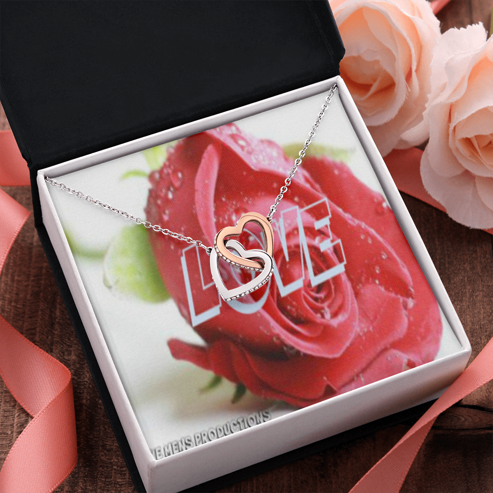 Two hearts embellished with Cubic Zirconia stones, interlocked together as a symbol of never-ending love. Made with high quality polished surgical steel. Cable chain measures 18 inches with a 4 inch extension, and fastens with a lobster clasp.
