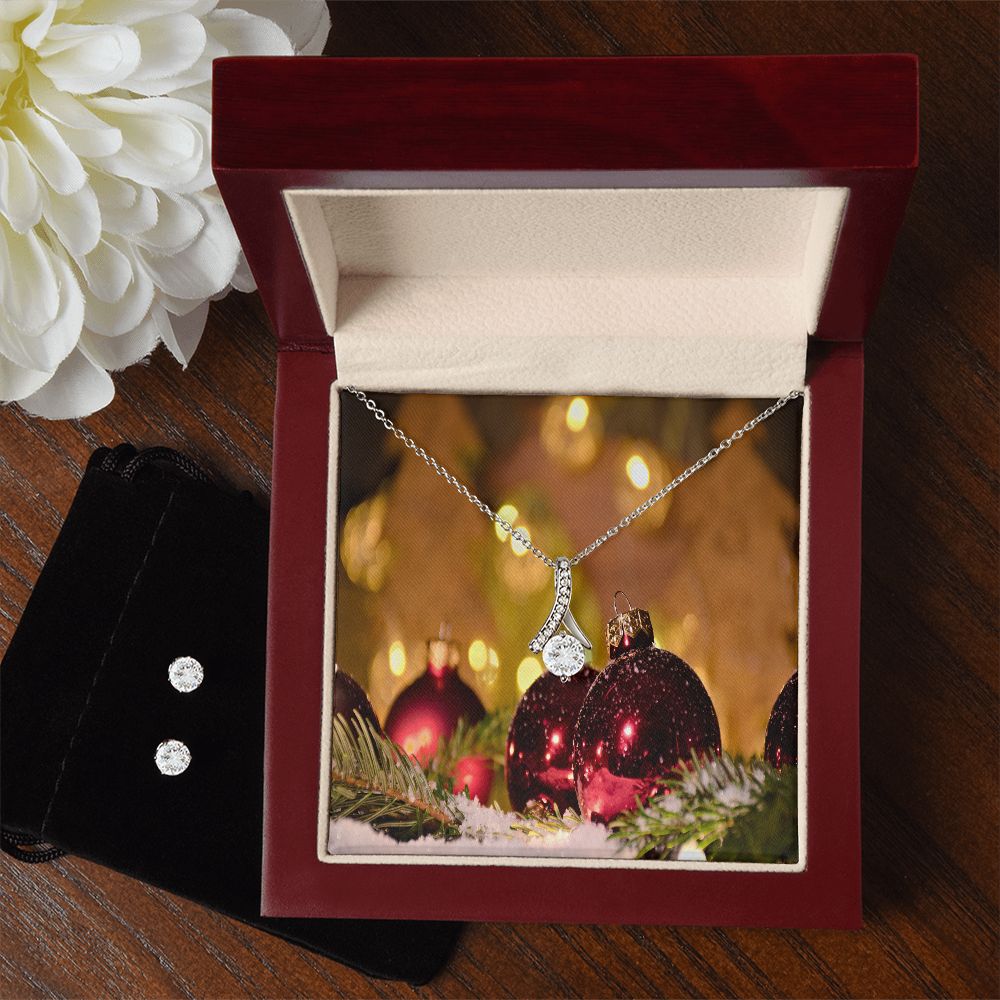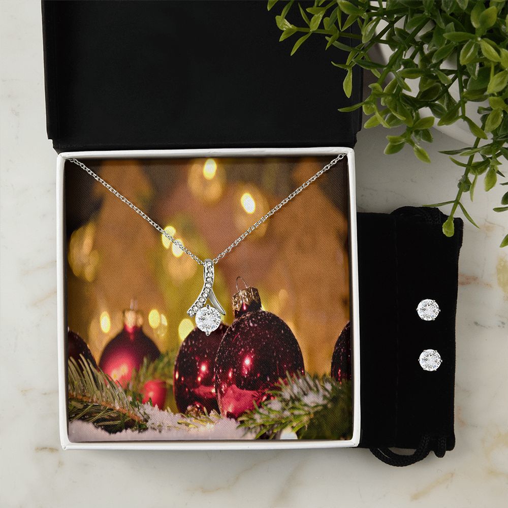 Merry Christmas Alluring Beauty Necklace +Clear CZ Earrings